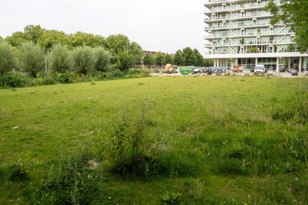 Aan de Haarlemmerweg, naast de nieuwbouwtorens op het voormalige ING-terrein ligt een klein stukje gras. Tijdens de bouw was het opslag voor bouwmaterialen en wagens, nu is het ingezaaid. Hier