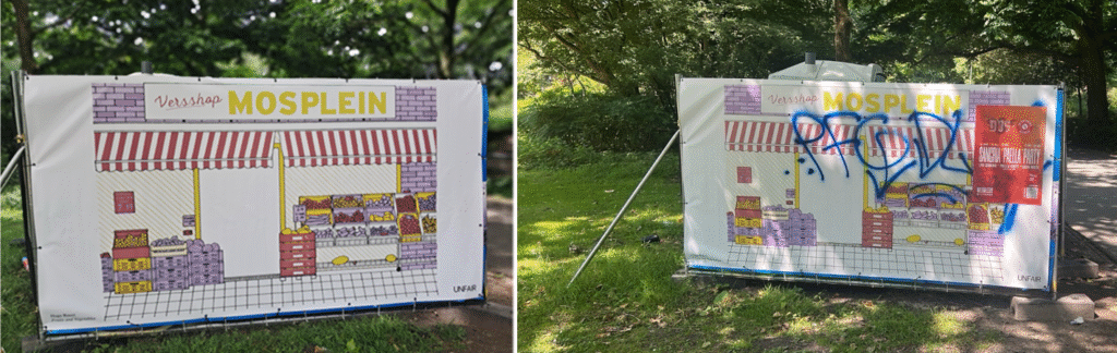 Een onverwachte kant van deze opfrisactie is dat de doeken ook gewoon mooi zijn. Een eerste exemplaar is reeds gejat. Maar mogelijk nog jammerder is dat ze alweer onder de graffiti zitten.